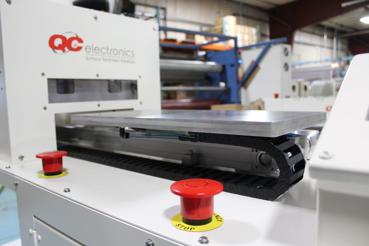 QC’s vacuum table corona treater often replaces handheld corona treaters to better replicate a production environment, and achieve precise, homogeneous treat levels.